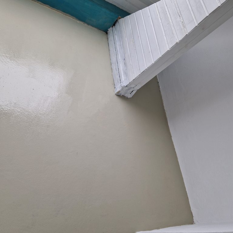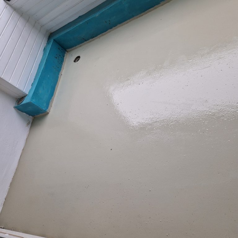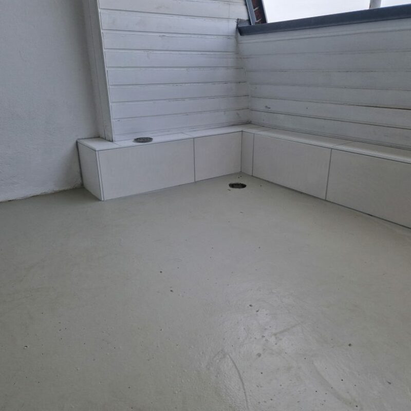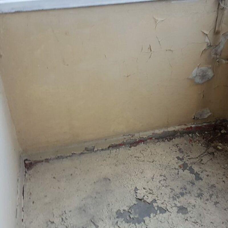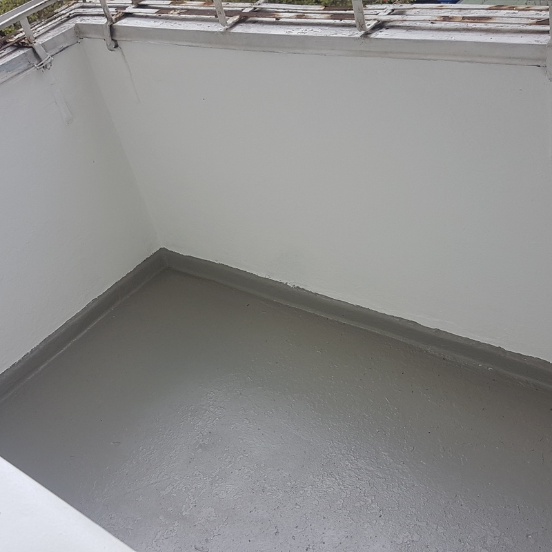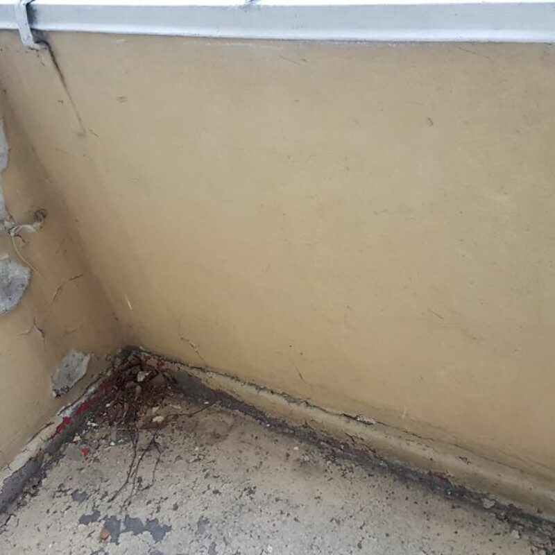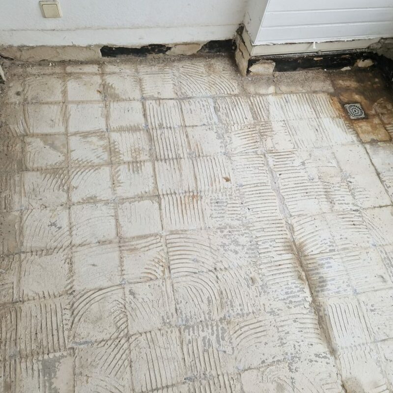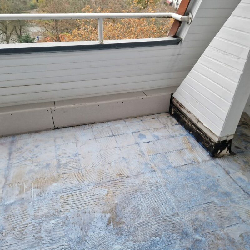 Bevor der Balkon saniert werden kann, muss zuvor der schadhafte Bestand inklusive des alten Belags bis auf die Tragkonstruktion zurück gebaut und fachgerecht entsorgt werden. Zu entfernende Bauteile wie Balkongeländer werden entfernt und je nachdem, ob sie weiterverwendet werden sollen, für die Wiederverwendung gelagert oder entsorgt. Oft erleben wir, dass Anbieter auf diesen Schritt verzichten und neue Abdichtungen und Oberbeläge auf schadhafte Balkone aufbringen. Bei Schweißbahnabdichtungen ohne darunterliegende durchfeuchtete Dämmung ist dies eine gängige Möglichkeit, eine Fläche wieder abzudichten. Bei Fliesenbelägen, die häufig eine unklare Haftung zum Untergrund haben und insbesondere, wenn der Aufbau des Altbestands unklar ist, ist dies aus unserer Sicht jedoch keine solide Möglichkeit zur Sanierung. Jede Balkonsanierung ist aufgrund der erforderlichen Nebenarbeiten, z.B. der Gerüststellung mit hohen Kosten verbunden, daher empfehlen wir, lieber einmal einen fachgerechten Neuaufbau herzustellen, als eine weitere Abdichtungslage mit Oberbelag auf den schadhaften Altbestand aufzubringen. Wird auf die neue Abdichtung verzichtet, werden tatsächlich nur die Symptome des schadhaften Oberbelages beseitigt, der Schaden bleibt jedoch und es ist nur eine Frage der Zeit, bis weitere Schäden sichtbar werden. Die freigelegte Fläche wird abschließend gereinigt und ist nun für die Neuerstellung vorbereitet.